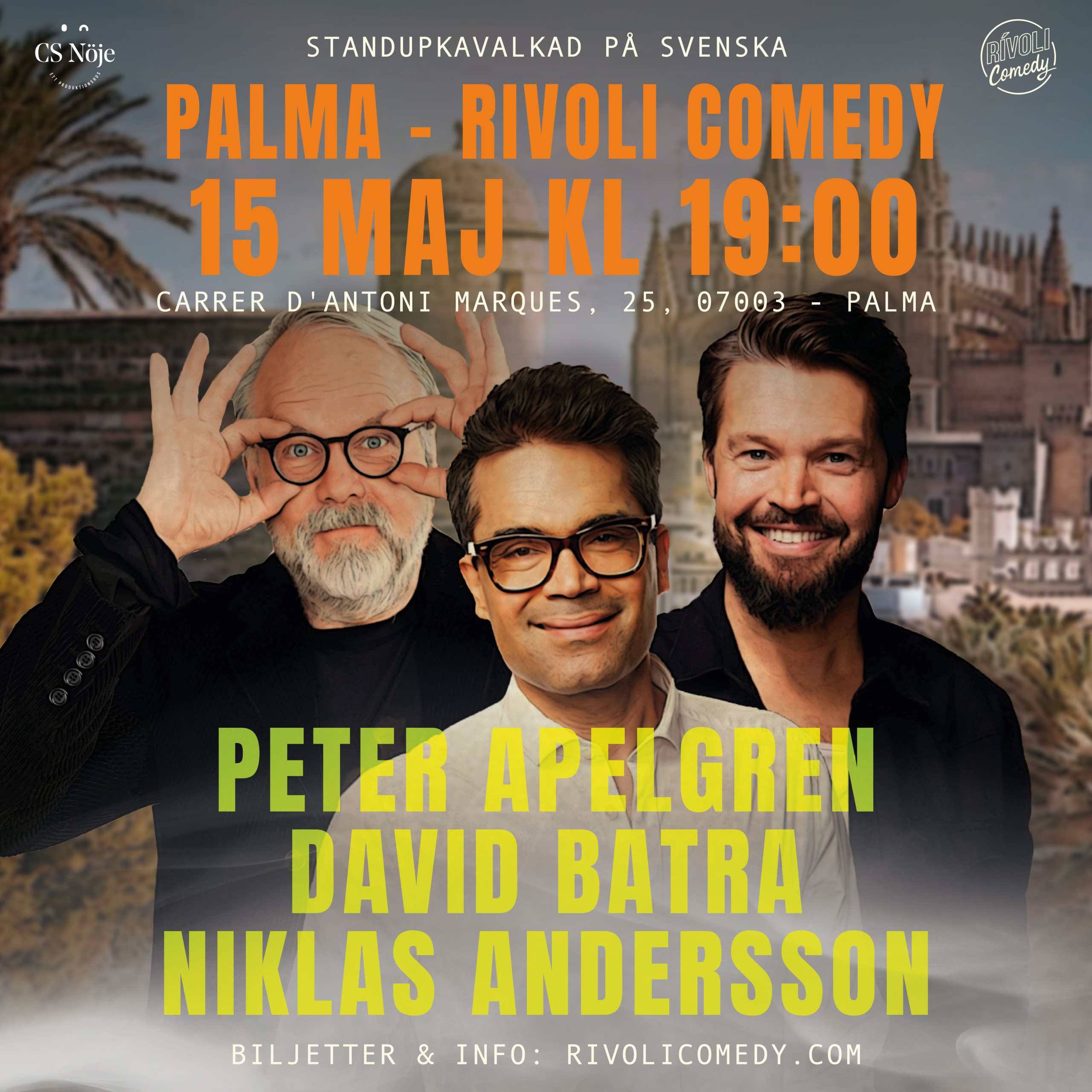 Kort och gott så blir det stand up på svenska (ev lite hindi och göteborgska) och förhoppningsvis en riktigt rolig kväll. Väl mött på Rivoli Comedy i Palma den 15:e maj kl 19:00.